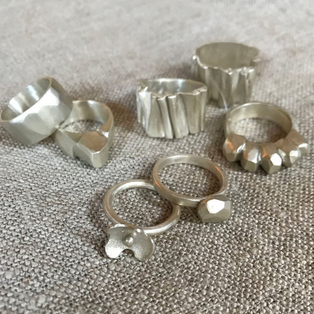 CAST SILVER - silver faceted rock ring - hand carved lost wax ring MMCSR02