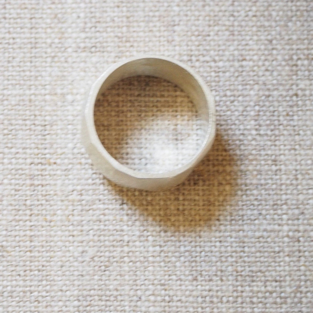 A gorgeous wide ring inspired by nature, made with the lost wax method in my Paddington studio. Each ring is individually carved in wax and then cast in silver. First I carved the wax into the faceted rock face shape, then it was cast off-site using recycled argentium (935 silver), then hand polished back in the studio. The matt finish is achieved by using a stainless steel wire brush, in keeping with the rocky look. This ring weighs 10g and is a strong statement, light and comfortable. Note that this is a handmade and hand polished item - it is perfectly imperfect! The ring is sized R and the band is 10mm wide band, 20mm diameter (approx). If you are interested in a different size, I can make to order….it will be similar but not exactly the same.